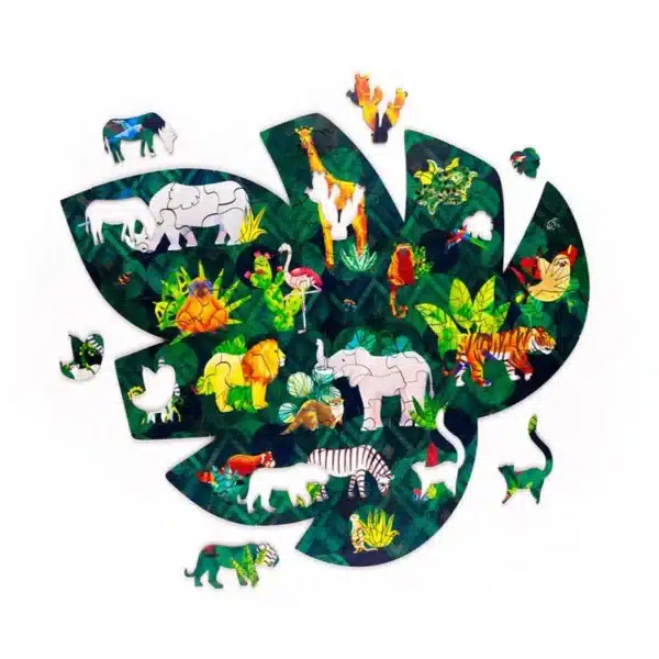 Az Állatvilág puzzle egyedi, állat- és növényformájú darabjai még izgalmasabbá teszik a kirakást. Miközben az elemeket illesztjük, olyan figurák bukkannak elő, mint például egy apró kaktusz, egy játékos tigris vagy egy lemur. Ezek a különleges formák nemcsak vizuálisan szépek, hanem kihívást is jelentenek a kirakás során. A darabok formái inspirálják a képzeletet, és egy plusz réteget adnak a puzzle-élményhez, ami minden korosztály számára szórakoztatóvá teszi.