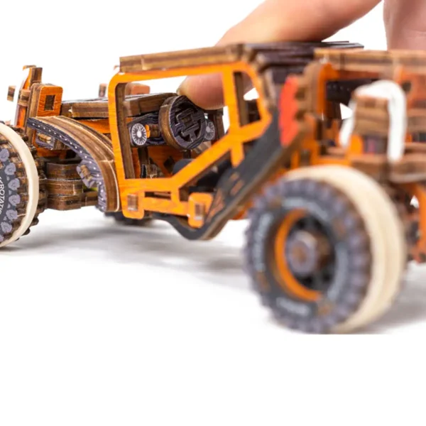 A Buggy a klasszikus homokfutók és könnyű terepjárók stílusát idézi. Letisztult, mégis karakteres vonalvezetése és finoman kidolgozott részletei modern, mechanikus eleganciát sugároznak. A lézervágott, színes faelemek élettel telivé teszik a modellt, miközben a funkcionális mozgásmechanizmus életet lehel belé.