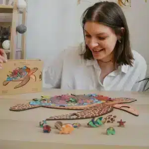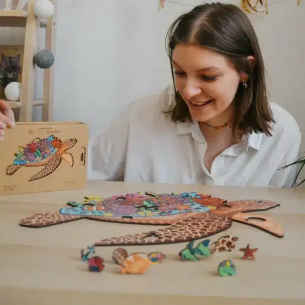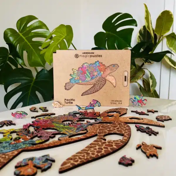 A Csendes-óceáni teknős fa puzzle minden darabja egyedi: Minden egyes fa kirakódarabnak egyedi formája van, ami külön szórakoztató a felnőttek és a gyerekek egyaránt. Imádni fogod!