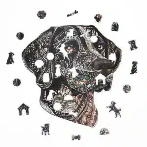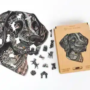 Hűséges, intelligens és tele van melegséggel. Ez a csokoládé labrador a társaságot és a feltétel nélküli szeretetet jelképezi. Mélybarna szemei kedvességet sugároznak, és gyönyörűen kidolgozott mintázata igazi műalkotássá teszi ezt a fából készült kirakóst. Kutyabarátok számára kötelező darab!