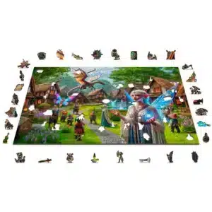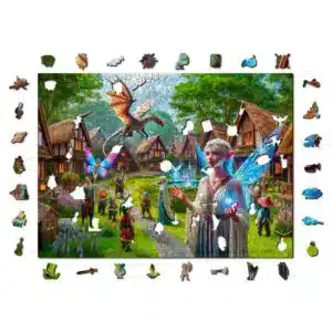 A Fantázia falu fa puzzle középpontjában egy kecses elf áll, akit egy sereg fantasztikus lény, például sárkányok, tündérek és más mitikus lények vesznek körül. A varázslatos téma életre kelti a jelenetet, így ez a projekt mind a puzzle rajongók, mind a mitikus művészetet kedvelők számára magával ragadó.