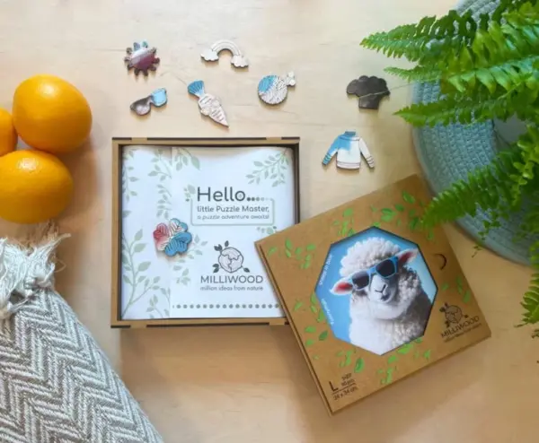 A fa elemek formája eltér a megszokottól – nincs két egyforma darab, így az összerakás valódi élményt nyújt.