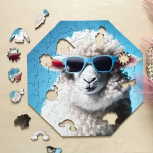 Ez a vidám, színes hangulat tökéletesen megelevenedik ebben a különleges fa puzzle-ben, amely egyszerre humoros, esztétikus és prémium minőségű.