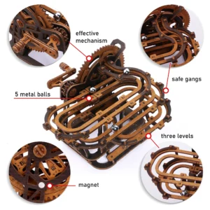 A Marble Run Mini 3D fa puzzle olyanoknak készült, akik szeretik a kihívást, a precíz kézműves munkát és a mechanikai szépséget. Ez nem csupán egy játék: tanulás, dekoráció, alkotás és élmény egyben. A logikai rejtvényektől a forgó fogaskerekeken át a büszkeségig, amit a kész mű hoz – ez a modell minden percét megéri.