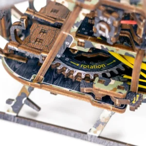 A Helikopter 3D fa puzzle nem csupán egy látványos modell, hanem a mechanikus mozgás elegáns példája is. A beépített rendszerrel, amely az indítókulcs elforgatásával mozgásba hozza a propellert, a modell hűen tükrözi egy valódi helikopter dinamikáját – mindezt elem, áram vagy bonyolult technológia nélkül, csak mechanikus elven működve.