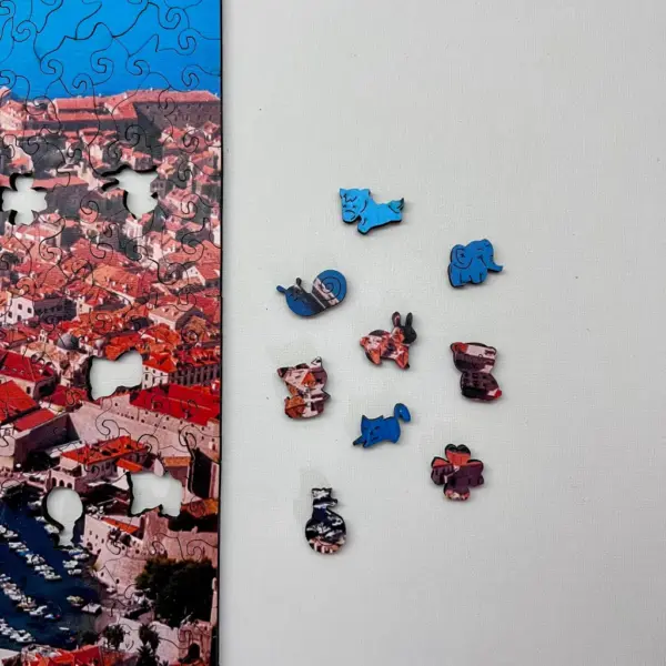 Dubrovnikot nem véletlenül nevezik „az Adria gyöngyszemének”. A város több száz éves történelmi múltja, középkori városfala és festői kikötője minden látogatót rabul ejt. A Horvátország, Dubrovnik fa puzzle ezt az élményt hozza el otthonodba: a legendás városfalakat, a csillogó vizet, és a napsütésben ragyogó háztetőket, mindezt aprólékosan kidolgozott részletekkel.