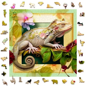 Lépj be a Kaméleon és virágok 500 varázslatos birodalmába ezzel a fából készült kirakóval, amely mesterien ötvözi a részletes művészi kidolgozást és a szórakoztató kihívást.