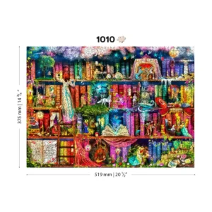 Merülj el a „Kincskereső könyvespolc 1000” magával ragadó világában. Egy olyan darab, amely zökkenőmentesen ötvözi a kihívást és a szépséget, mindezt bonyolultan megmunkálva egyetlen egyedi fa kirakójátékban.