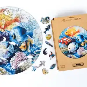 Merülj el a vibráló tengeri élővilágban! A korallzátonyok a harmóniát, az ellenálló képességet és az óceán csodáit szimbolizálják. Ez a színes, fából készült kirakós a hullámok alá repít, ahol káprázatos halak és lenyűgöző korallképződmények várnak rád egy varázslatos víz alatti világban.