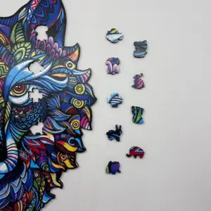 A Misztikus farkas fa puzzle prémium minőségű, újrahasznosítható fából készül. Minden darabot lézerrel vágnak ki, így az illeszkedés tökéletes és sima. A darabok között különleges figurák is rejtőznek – apró állatok, természet-inspirálta formák és absztrakt elemek –, amelyek még izgalmasabbá teszik az összerakást.