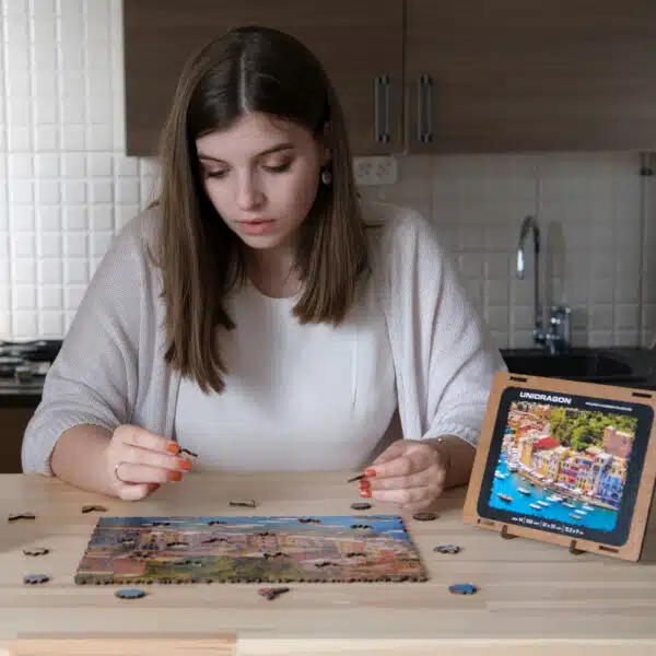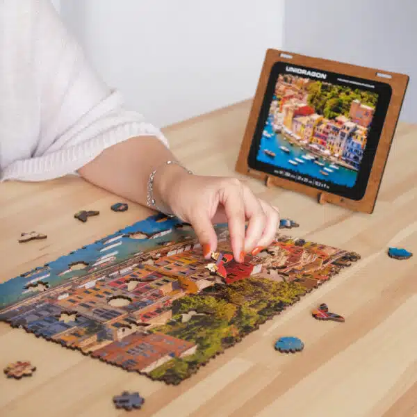 Ezek a kirakók gyakorlatilag bárkinek nagyszerű ajándékot jelentenek. Egyedi puzzle-darabkákkal rendelkeznek, amelyeket szuper szórakoztató összerakni, és az IQ-t is növelik. Ez a játék élvezetes és hasznos gyakorlat, mivel játék közben fejleszti az agyat és a finommotorikus készségeket. A kirakók kiváló minőségű rétegelt lemezből készülnek, és minden egyes darab lézervágott, egyedi és művészi módon másképp készült. Képzelje el magát nyaralni ezzel az olasz Riviéra Woosaic fából készült UNIDRAGON kirakóval. Fedezze fel a kirakó minden gyönyörű részletét és színét. Ezt a puzzle-t szuper szórakoztató összerakni a családdal. Minden egyes puzzle-darab egyedi, ami még szórakoztatóbbá és élvezetesebbé teszi a kirakózást. Különböző állatfajok, virágok és még sok más egyedi darabot fogsz felfedezni. Így igazi kihívás megtalálni a megfelelő darabot.