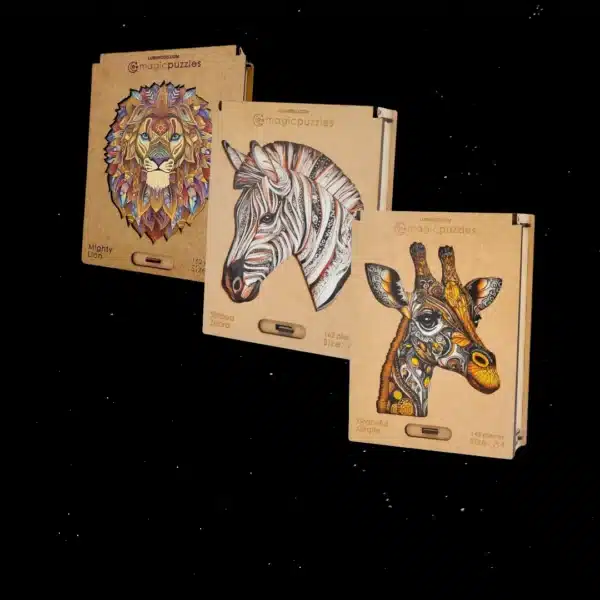 Engedd be otthonodba a szafarik lenyűgöző hangulatát! Az AZ Puzzle Szafari csomag egy exkluzív kollekció, amely három gondosan válogatott prémium fa puzzle remekművet tartalmaz. Akár magadnak keresel hosszantartó, stresszoldó, akár egy rendkívüli és környezetbarát ajándékot szeretteidnek, a Szafari csomag a tökéletes választás.