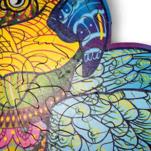 Színes papagáj fa kirakós a Wood Trick-től, amely tökéletes választás az igazán kreatívaknak!