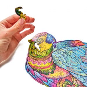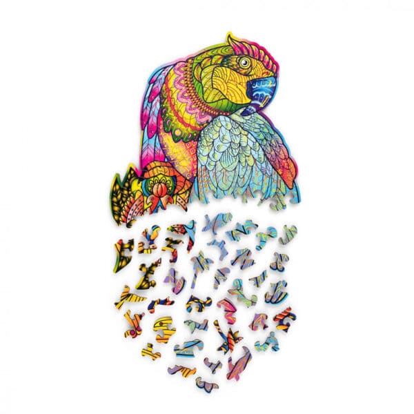 Színes papagáj fa kirakós a Wood Trick-től, amely tökéletes választás az igazán kreatívaknak!