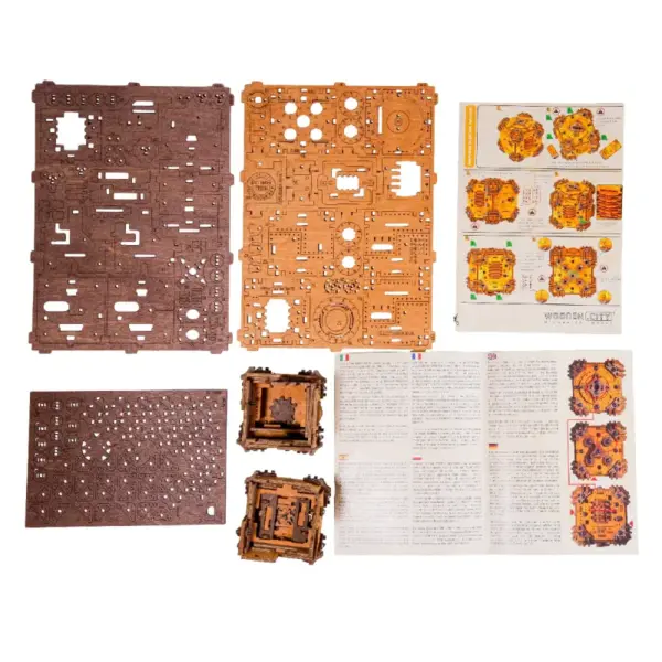 A Tesseract tuka 3d fa puzzle doboz precízen lézervágott fa elemekből áll, amelyek ragasztó nélkül illeszkednek egymáshoz. Az intelligens tervezésnek köszönhetően minden elem pontosan a helyére kerül, így az építés folyamata gördülékeny és élvezetes.