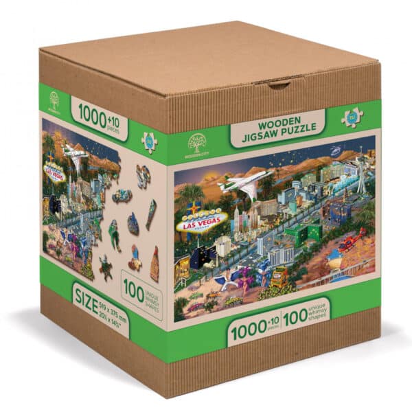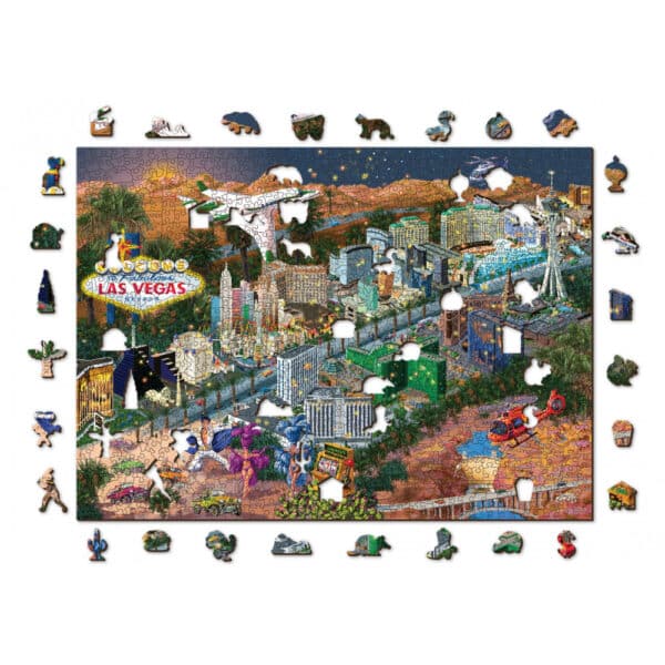 A Welcome to Las Vegas puzzle egy olyan rejtélyes univerzumba invitál, ahol a neonfények összefonódnak a sivatagi homokkal. Éld át a kaszinók vibráló energiáját, Elvis Presley ikonikus báját, valamint a helikopterek és repülőgépek nyüzsgő dinamizmusát. Bűvöljenek el a fülledt táncosnők, a terepjárók okozta adrenalin és a sivatag tágas szépsége.