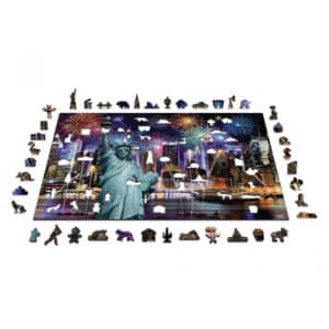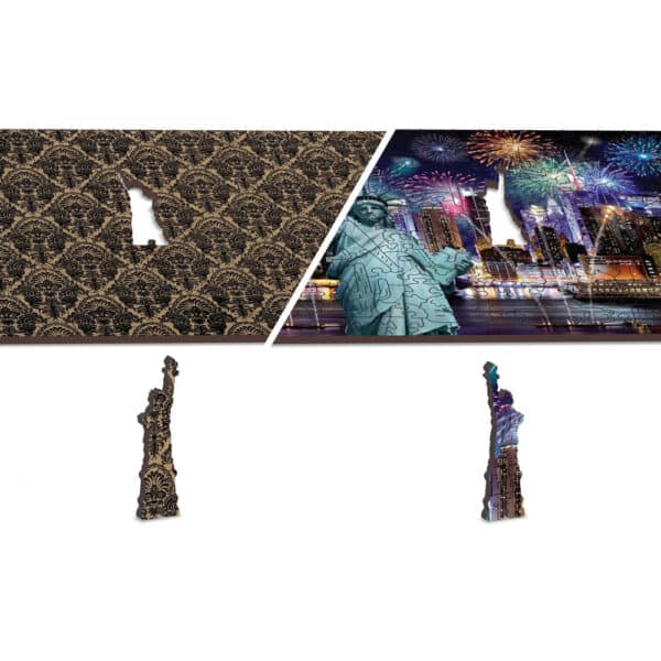 A New York éjjel fa puzzle minden egyes darabja aprólékosan kidolgozott, hogy visszaadja a fotó elképesztő energiáját. A ragyogó tűzijáték szikrái, a vízen tükröződő színes fények és az égbe nyúló felhőkarcolók kontrasztja egészen különleges hangulatot teremt. A Szabadság-szobor méltóságteljes megjelenése még tovább erősíti ezt a monumentális élményt.